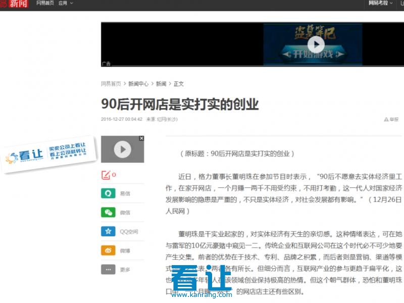 近日,格力董事长董明珠在参加节目时表示,“90后不愿意去实体经济里工作,在家开网店,一个月赚一两千不用受约束,不用打考勤,这一代人对国家经济发展影响的隐患是严重的,不只是实体经济,对社会发展都有影响。”(12月26日人民网)